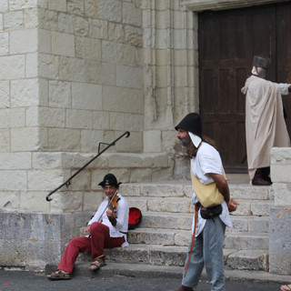 Nous étions à La Roche-Posay le samedi 8 et dimanche 9 juillet. Le soleil et la pluie aussi... Si le samedi nous a permis de retrouver dans la chaleur nos amis de la Mandragore et d'A Tous Les Temps, le dimanche nous a contraint à plier le campement sous la pluie. L'emplacement ombragé sur les bords de la Creuse nous a cependant préservé des rigueurs d'un temps orageux. Nous avions décidé de nous restaurer le soir au banquet que proposaient les organisateurs de cette rencontre médiévale, l'association Cœur Chevaleresque. Nous pouvons donc remercier Aurélie et Emmanuel, parmi les autres organisateurs, du choix du traiteur qui nous a régalé... même si le gratin dauphinois n'était pas "histo", il était délicieux. Nos adhérents qui n'ont pas pu venir nous ont manqué pour partager ce moment où le public nous a laissé peu de répit autour des différents ateliers proposés : jeux, mailles, archerie...