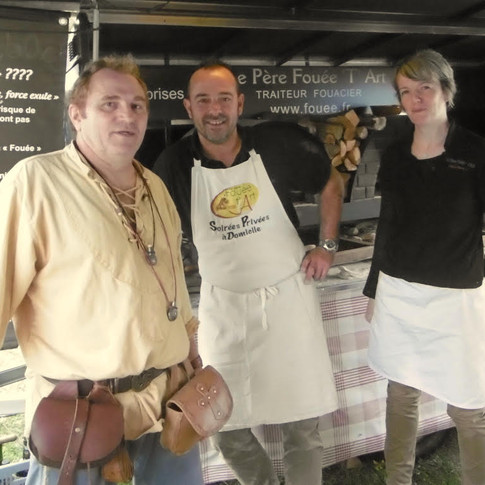 Weekend chargé pour Euphrosyne, Flavien et Enguerrand : en effet, après une soirée en remerciements des bénévoles à Bazoges-en-Pareds, départ tôt le matin pour Beaulieu-les-Loches où A Tous Les Temps organisait son banquet annuel en plein air sur son campement.